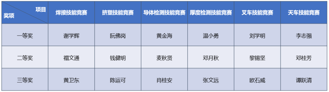 在公司董事會(huì)的大力支持下,在組委會(huì)以及各級(jí)部門(mén)的大力配合下,六項(xiàng)技能競(jìng)賽能夠有條不紊地進(jìn)行,2021年度“新亞杯”專業(yè)技能競(jìng)賽成功舉辦并取得了好成績(jī),決賽成績(jī)?nèi)缦拢?br />
