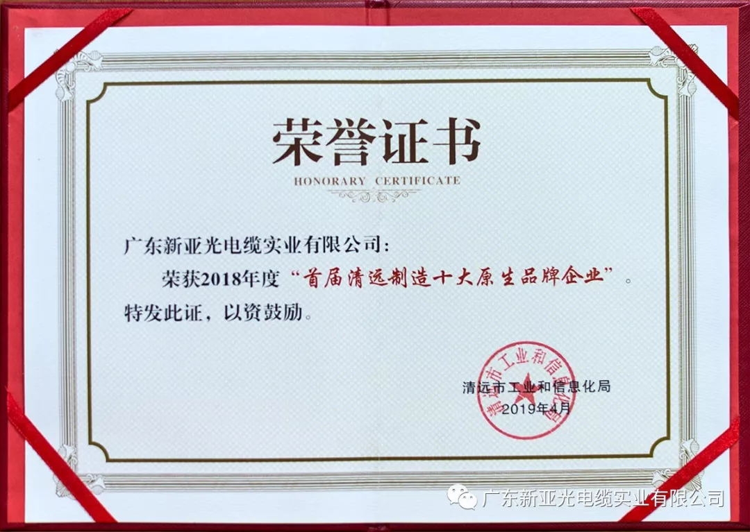 我司自成立以來(lái),始終秉承誠(chéng)信經(jīng)營(yíng)的理念,踐行“新亞電纜用心造”的核心價(jià)值觀,扎根本土,放眼全球,竭力為社會(huì)各界提供優(yōu)質(zhì)的電纜產(chǎn)品和服務(wù)。此次榮獲“清遠(yuǎn)制造十大原生品牌”稱(chēng)號(hào),是社會(huì)各界和廣大公眾對(duì)我司的肯定和認(rèn)可,令我司的品牌價(jià)值邁上新高度。