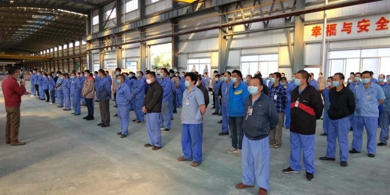 4月12日早8時(shí)許,廣東新亞光電纜實(shí)業(yè)有限公司生產(chǎn)系統(tǒng)所屬各部門(mén)員工在部門(mén)主管的帶領(lǐng)下,迎著朝陽(yáng),精神抖擻,踏著整齊的步伐,來(lái)到了新建成的管材車(chē)間一側(cè)的空地上,舉行2020年3月份安全生產(chǎn)流動(dòng)紅黃旗交接儀式及月度安全生產(chǎn)動(dòng)員大會(huì)。